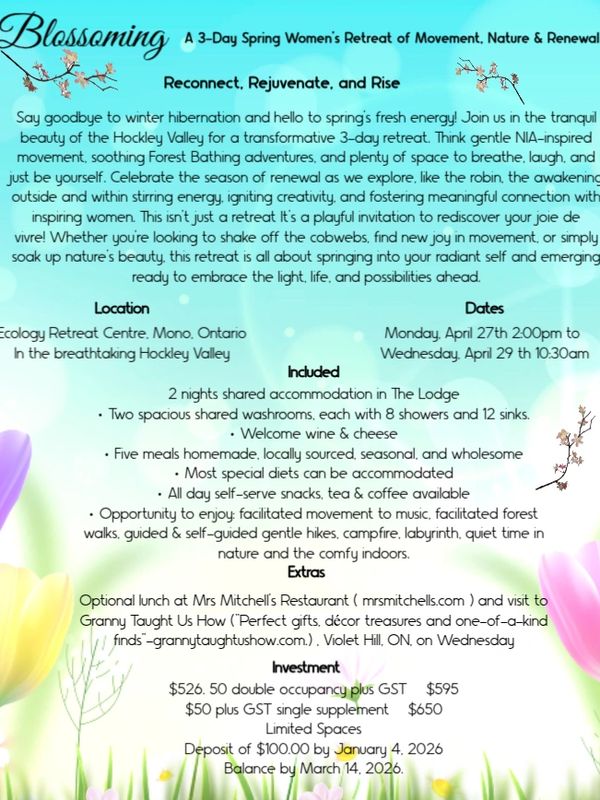 Register here for spring enchantment: https://www.eventbrite.ca/e/blossoming-a-womens-spring-retreat-tickets-1975228201723?aff=oddtdtcreator